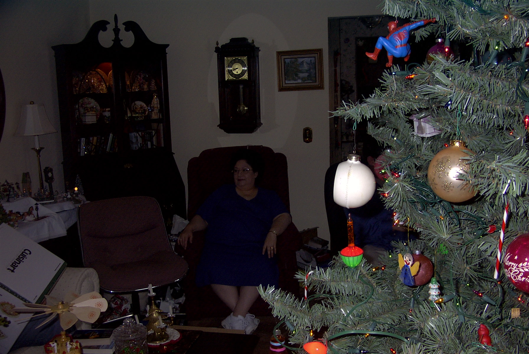 Celeste Johnson and Christmas tree 2003 at home in Grand Rapids, Michigan